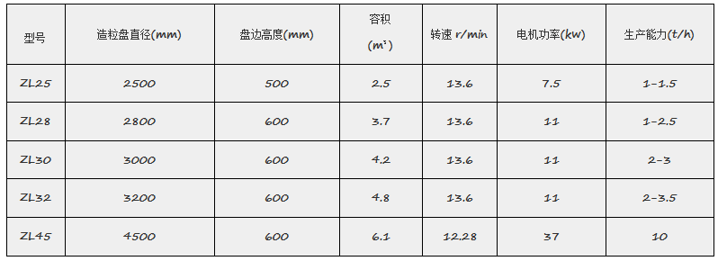 圓盤造粒機(jī)主要技術(shù)參數(shù):