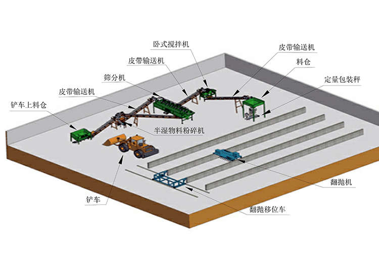 3、改善原料堆的通透性。翻堆系統(tǒng)能把物料處理成小的團(tuán)塊,使質(zhì)地粘稠、密實(shí)的原料堆變得蓬松、富有彈性,形成適宜的孔隙度