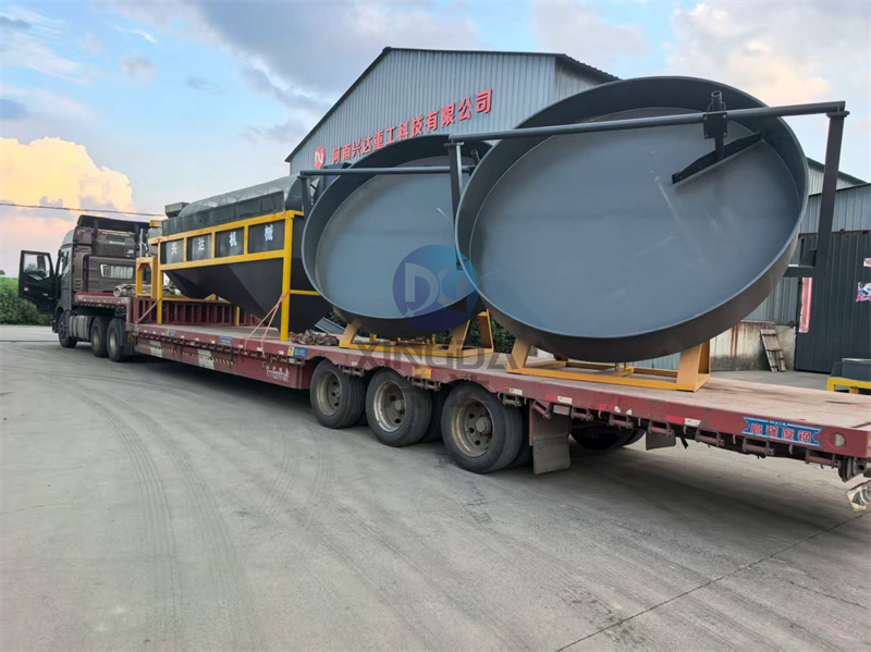 一車發(fā)往遼寧的顆粒有機(jī)肥生產(chǎn)線設(shè)備2臺3.2米圓盤造粒機(jī)準(zhǔn)備出貨: